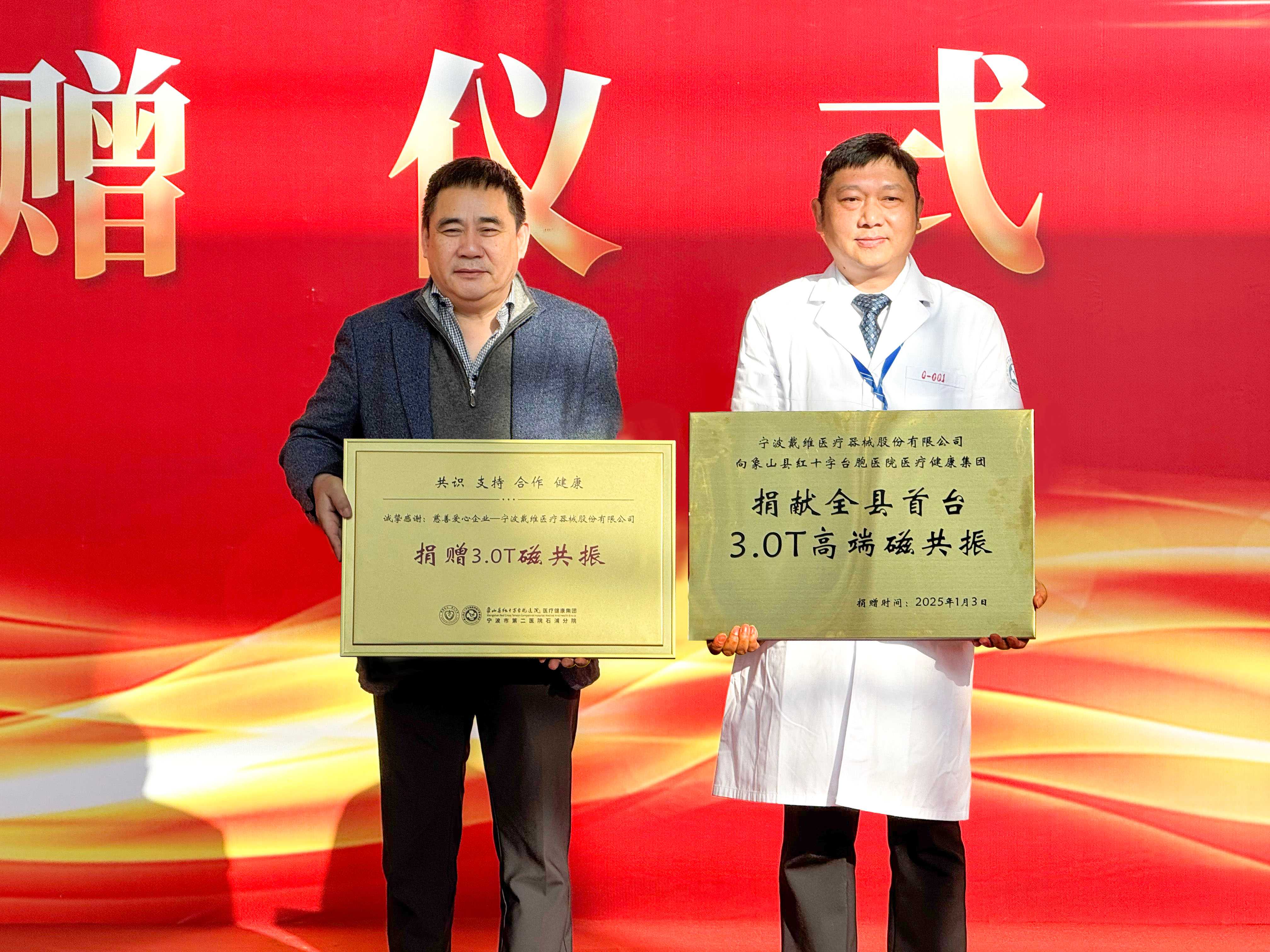 1月3日(ri),在(zai)戴維(wei)醫(yī)療創始人(ren)陳雲勤先(xian)生(sheng) “服務(wu)人(ren)類,延續生(sheng)命” 這一(yi)崇高(gao)宗旨的(de)引領(ling)下,戴維(wei)醫(yī)療再次展(zhan)現(xian)齊(qi)業擔當,通(tong)過(guo)象山(shān)縣慈善(shan)總會向象山(shān)縣紅(hong)十字檯(tai)胞醫(yī)院醫(yī)療健康集(ji)團(tuán)總院定向捐贈了(le)象山(shān)縣首檯(tai) 3.0T 磁共振設(shè)備(bei),價值1000多(duo)萬元。